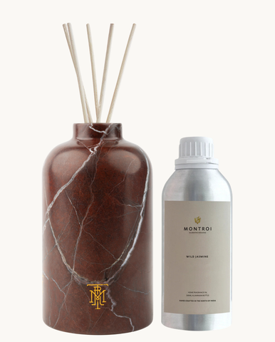 Hand-carved from Rosso Levanto marble, the Rosso Reed Diffuser offers a refined, sculptural vessel designed to elevate Montroi’s home fragrance experience.