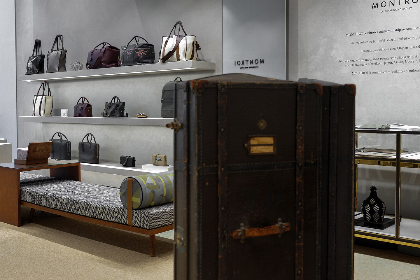 We manufacture beautiful objects crafted with pride, skill and care. Objects you will treasure, objects that tell a story. We collaborate with more than twenty workshops with skilled artisans and craftsmen manufacturing in Marrakech, Jaipur, Oman, Ubrique, Bergamo and Grasse. MONTROI is commited to building an authentic nomad story.